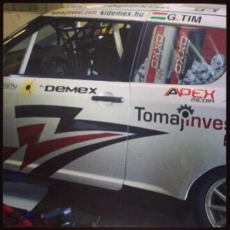 Az autó már a csapatnál, új dekort kapott, igen szép lett, és reméljük a kocsi is gyors lesz. Nem nagy pályán megyünk, hanem egy 2km-es rövid verzión, ahol szinte csak jobb kanyar van. Eső is várható, biztos izgalmas versenyek lesznek. Figyeljétek a weboldalt és Gábor facebook oldalát, igyekszünk folyamatosan hírekkel szolgálni.